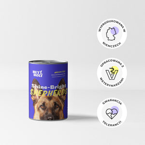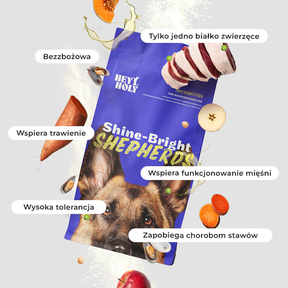 Shine-Bright Shepherds ist speziell für Schäferhund-Rassen entwickelt, so wie den Deutschen Schäferhund, den Malinois, aber auch Schäferhund Mischlinge. Bei unserem Futter handelt es sich um Adult-Futter. Damit ist es für alle ausgewachsenen Hunde geeignet.