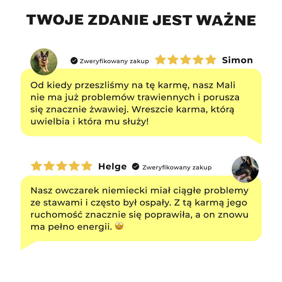 "Unser Rex, ein 4-jähriger Deutscher Schäferhund, hatte immer wieder Verdauungsprobleme und Durchfall. Seit der Umstellung auf HEY HOLY Shine-Bright Shepherds haben wir endlich keine Probleme mehr, und sein Fell glänzt auch richtig schön. Er frisst das Futter mit Begeisterung, was bei ihm keine Selbstverständlichkeit ist, und wirkt insgesamt viel fitter und ausgeglichener. Für uns das perfekte Futter, nach langer Suche!"