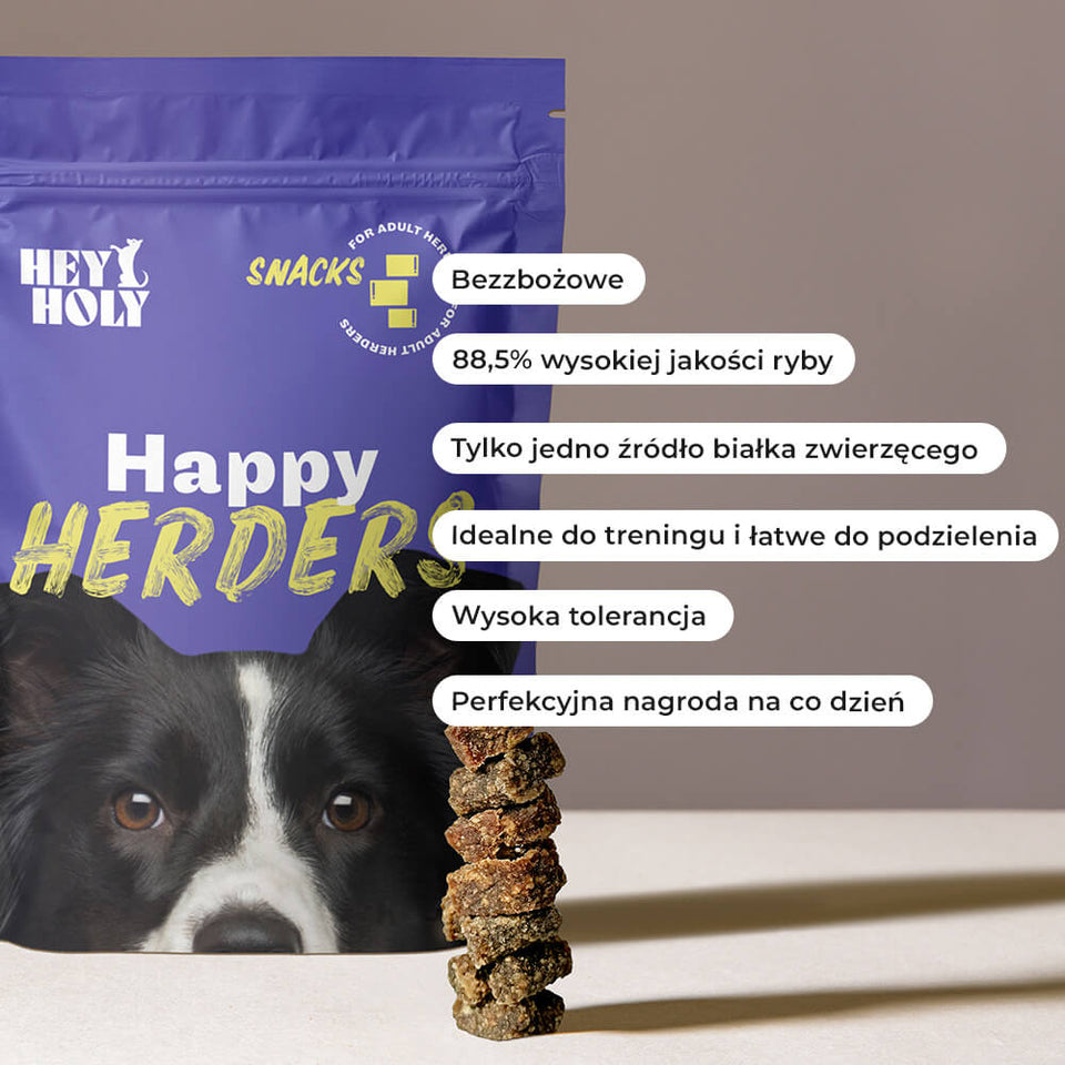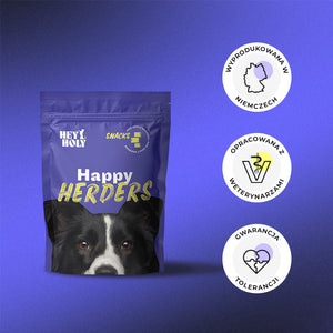 Perfekt ergänzt! Unsere Happy Herders Snacks sind die ideale Ergänzung zu unserem Happy Herders Futterportfolio. Mit 98% Huhn als einzige Proteinquelle sind sie besonders schmackhaft und gut verträglich. Ob beim Training oder als kleine Belohnung zwischendurch – die getreidefreien Snacks passen perfekt in den Alltag deines Hütehundes.