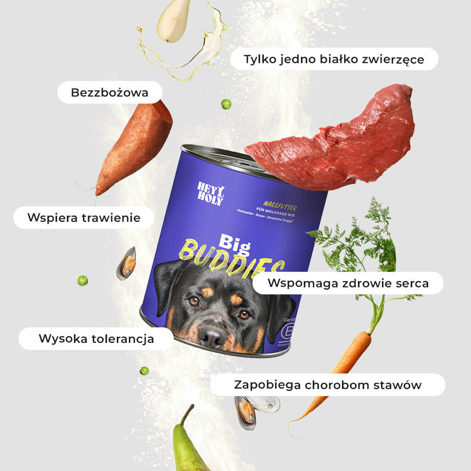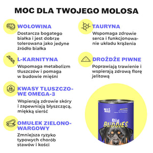 Big Buddies ist speziell für Molosser-Rassen entwickelt, so wie den Rottweiler, den Boxer, aber auch Molosser Mischlinge. Bei unserem Futter handelt es sich um Adult-Futter. Damit ist es für alle ausgewachsenen Hunde geeignet.