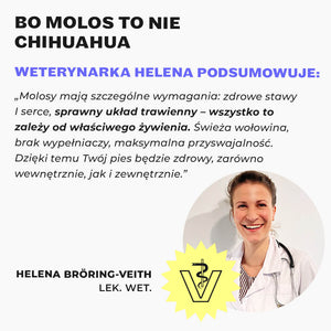 “Viele Molosser leiden unter Magen-Darm-Problemen, Unverträglichkeiten sowie Gelenk- und Herzbeschwerden – aber das muss nicht sein! Unser Nassfutter ist hilft, diese Symptome zu lindern.”
