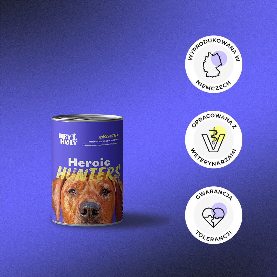 Heroic Hunters ist speziell für große Jagdhund-Rassen entwickelt, so wie den Weimaraner, den Magyar Vizsla, den Rhodesian Ridgeback, aber auch große Jagdhund Mischlinge. Bei unserem Futter handelt es sich um Adult-Futter. Damit ist es für alle ausgewachsenen Hunde geeignet.