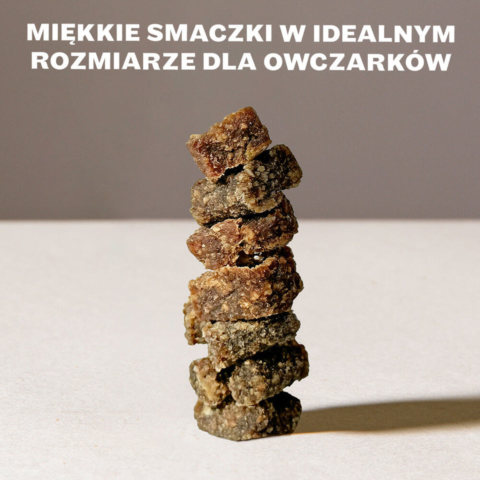 Nos friandises se caractérisent par une teneur exceptionnellement élevée en viande, les rendant parfaites pour vos sessions d'entraînement. La variété de viande utilisée dans nos friandises est la même que celle de notre nourriture, permettant ainsi une alimentation monoprotéinée complète. Cela aide à soulager le système immunitaire de votre compagnon à quatre pattes.