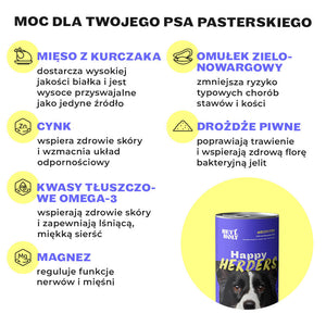 Happy Herders est spécialement conçu pour les races de chiens de berger, comme le berger australien, le border collie, mais aussi les chiens de berger croisés. Notre nourriture convient à tous les chiens adultes.