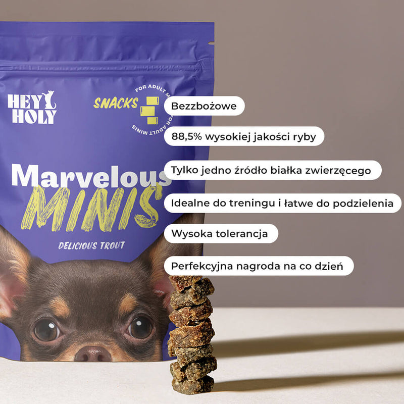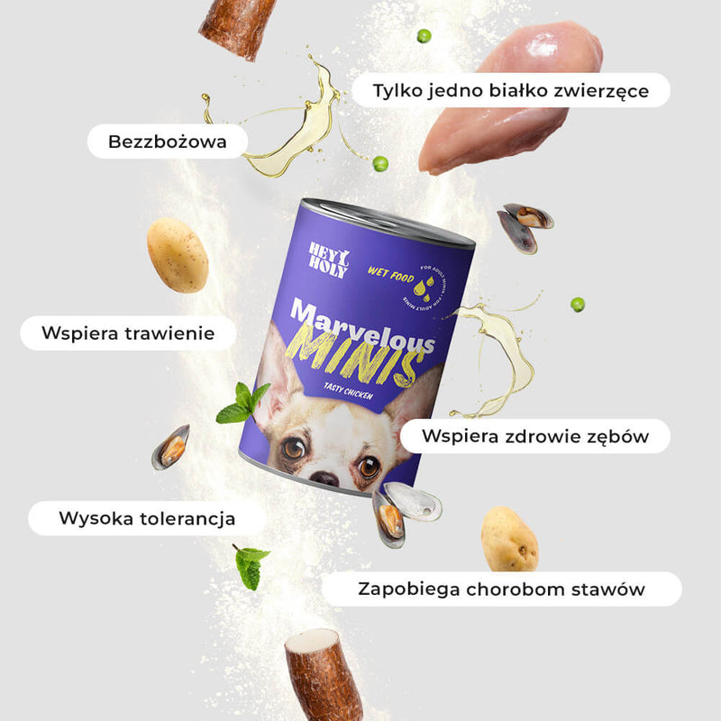 Marvelous Minis została specjalnie opracowana dla ras psów miniaturowych, takich jak chihuahua, maltańczyk, a także dla mieszanych ras psów miniaturowych. Nasza karma to karma dla dorosłych psów.
